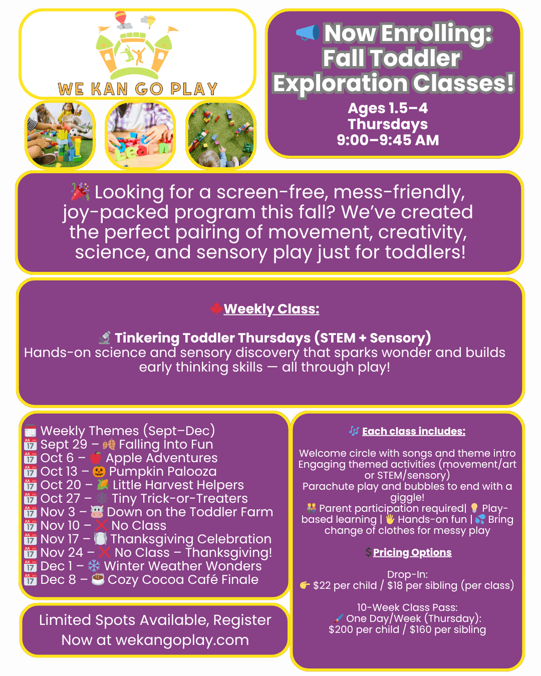 Contact us today to learn more about our programs and schedule a visit to We Kan Go Play!